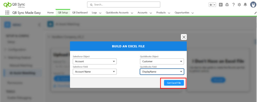 To use this feature, you need to upload an Excel sheet that contains Salesforce and QuickBooks records, such as names, addresses, emails, and other matching fields. After taking the input, the feature compares and matches the provided records. Once the matching process is completed, it generates an output Excel sheet based on the results.